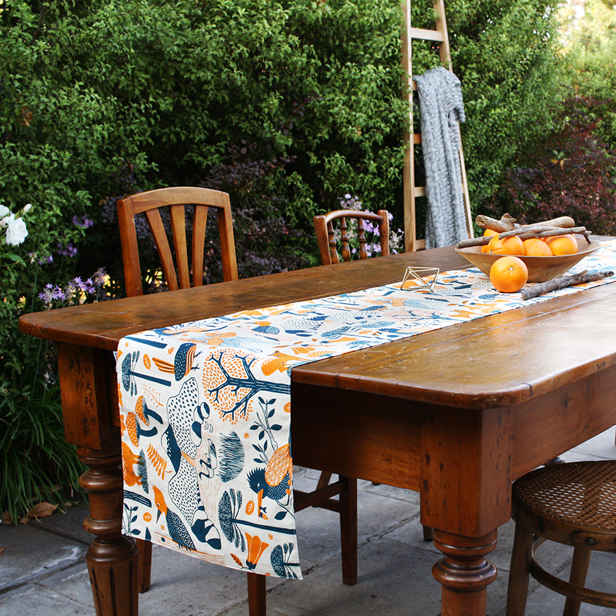 Camino de mesa 100% algodón estampado en serigrafía.