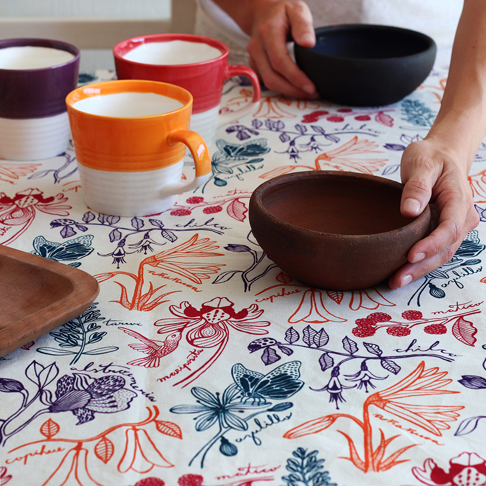 Mantel de 150 x 250 cm en tela 100% algodón estampada en serigrafía termofijada con tratamiento antimanchas